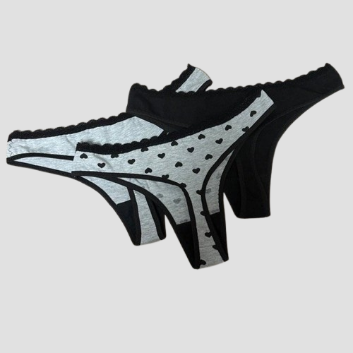 Pack x 3 colaless de algodón: Negro + Gris + Gris con corazones